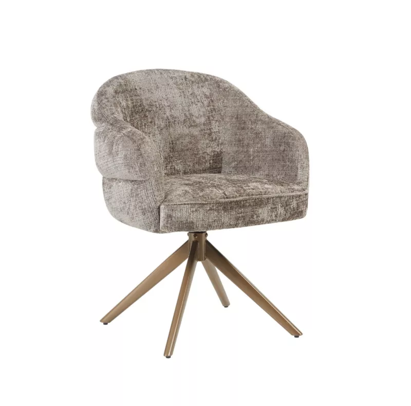 Eetkamerstoel Sig is voorzien van armleuningen, een draaibare zitting en een auto-return mechanisme. De combinatie van de warme bekleding en de metalen poot zorgt voor een modern en stijlvol geheel, terwijl de afgeronde rug met subtiele banen aan de achterzijde het ontwerp extra karakter geeft. Let op: de stoelen worden per twee stuks verkocht!