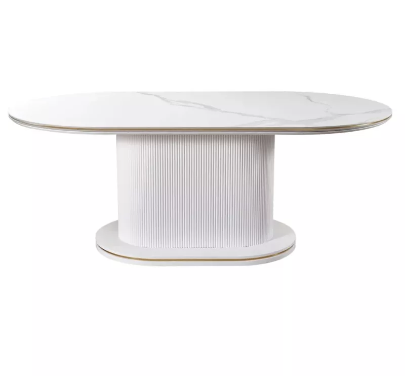 Meubelserie Aqua is prachtig in ieder interieur. Vervaardigd met mooie stijlelementen. De eettafel heeft een prachtig marmerlook blad.