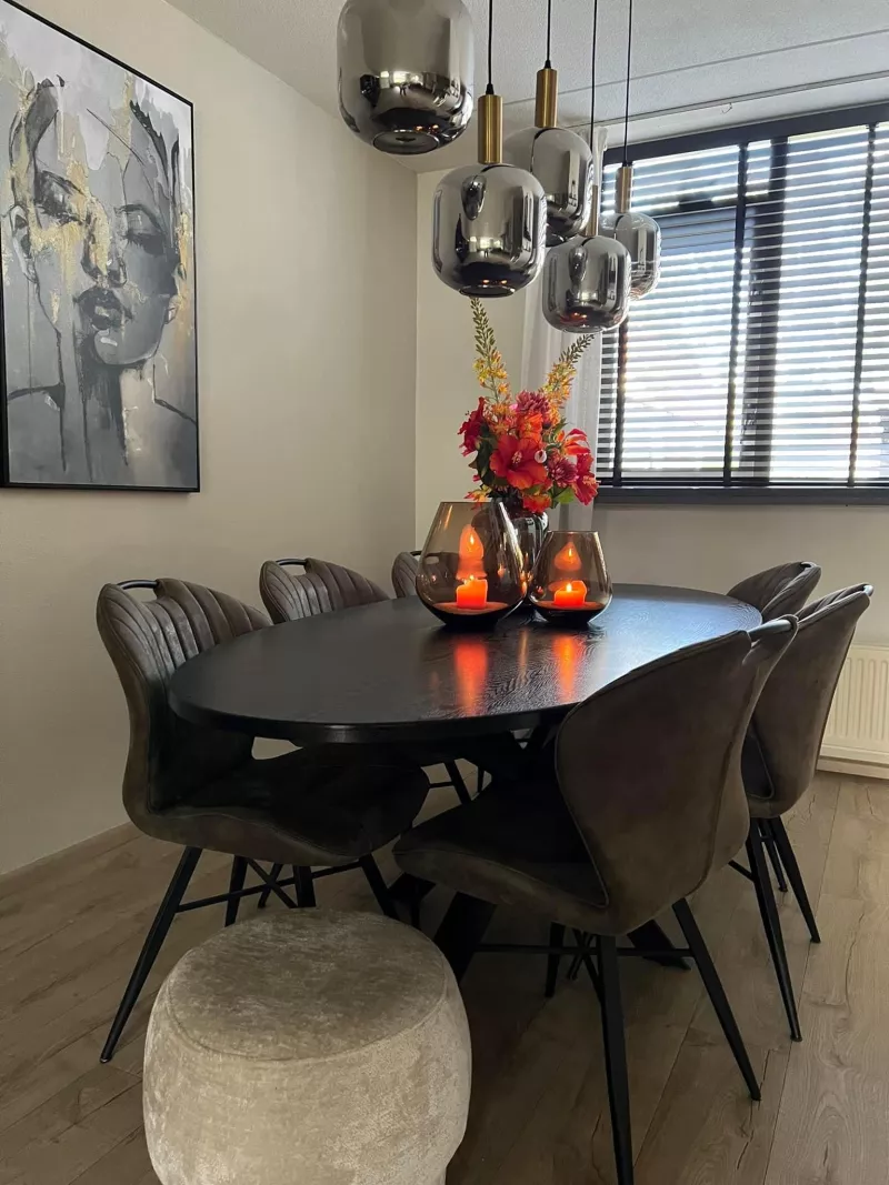 Meer is beter. Niet één of twee, maar liefst drie lichtpunten bengelen stijlvol naar beneden vanaf de bevestigingsplaat. Omgeven door een elegante glazen huls, met een dialoog tussen heldere en fumé gedeeltes. Om maximaal van de magie te genieten, kies je voor filamentlampen. Sluit de hanglamp aan op een dimmer om meteen ook een echte sfeermaker binnen te halen.