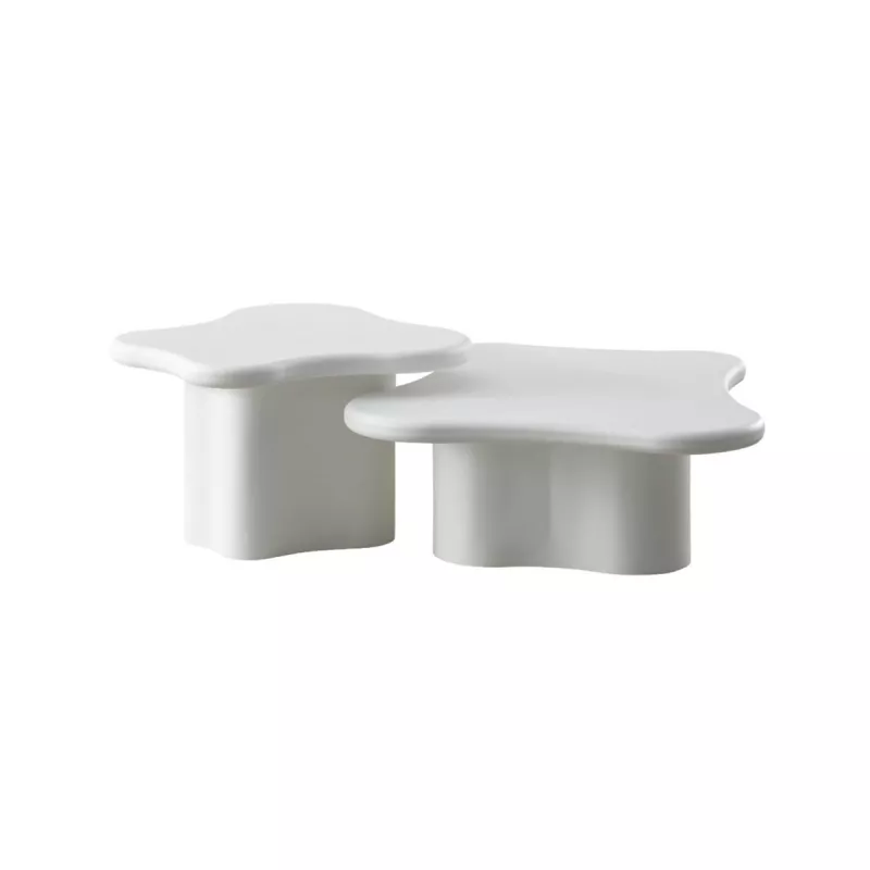 De organische vormen en zachte witte afwerking geven deze tafel een moderne en luchtige uitstraling. Dankzij het unieke design met ronde curves straalt de tafel rust en elegantie uit, terwijl hij toch praktisch en stevig is.